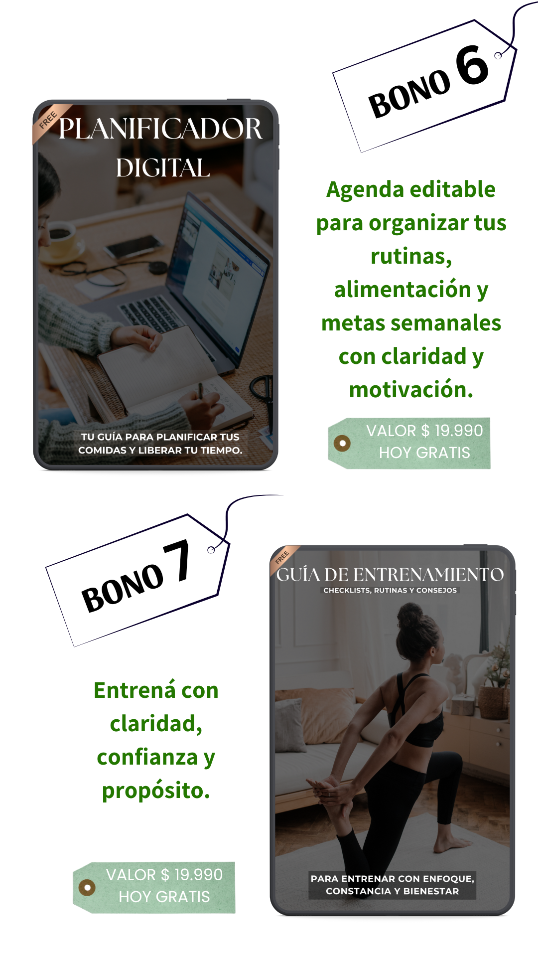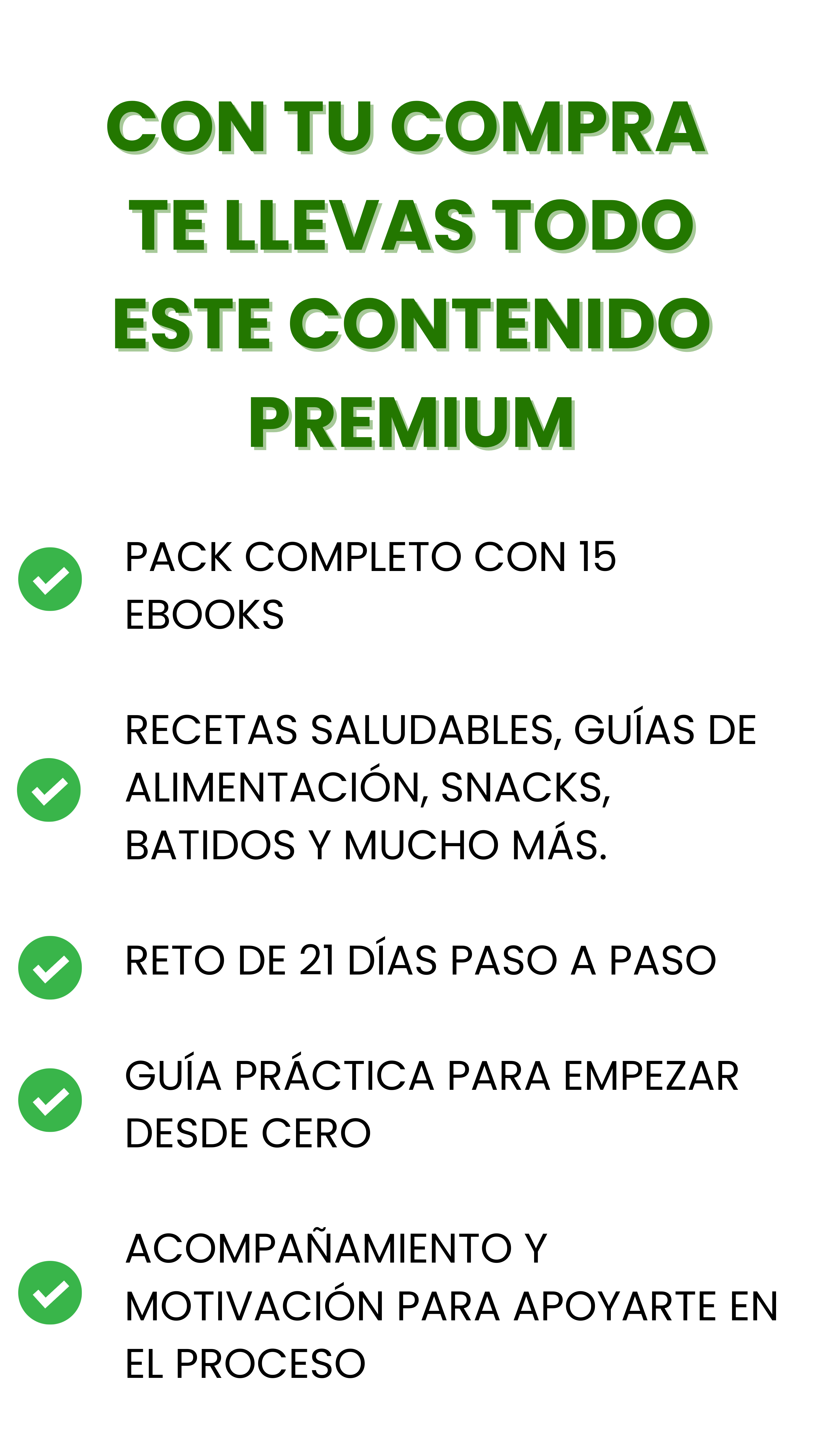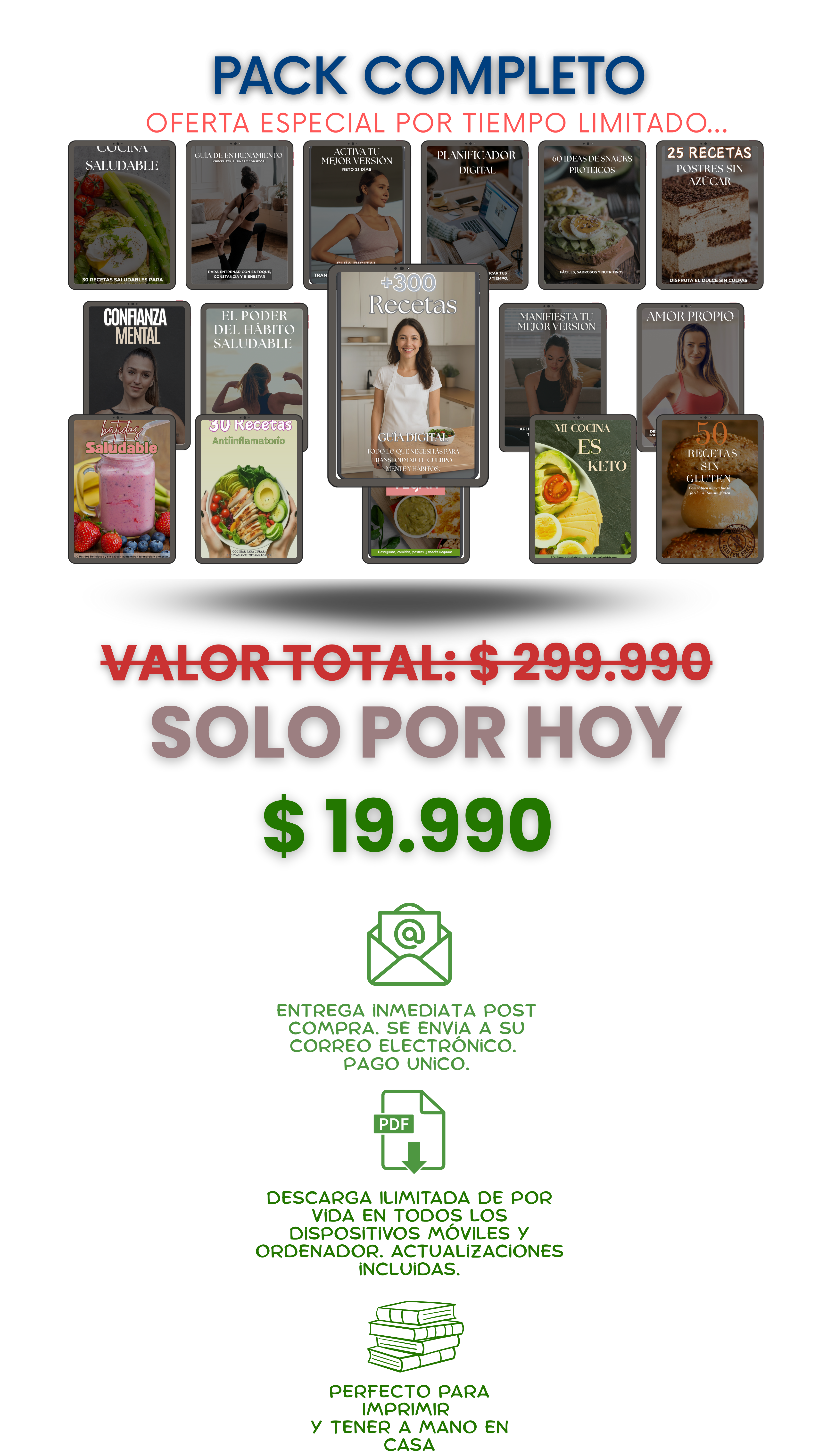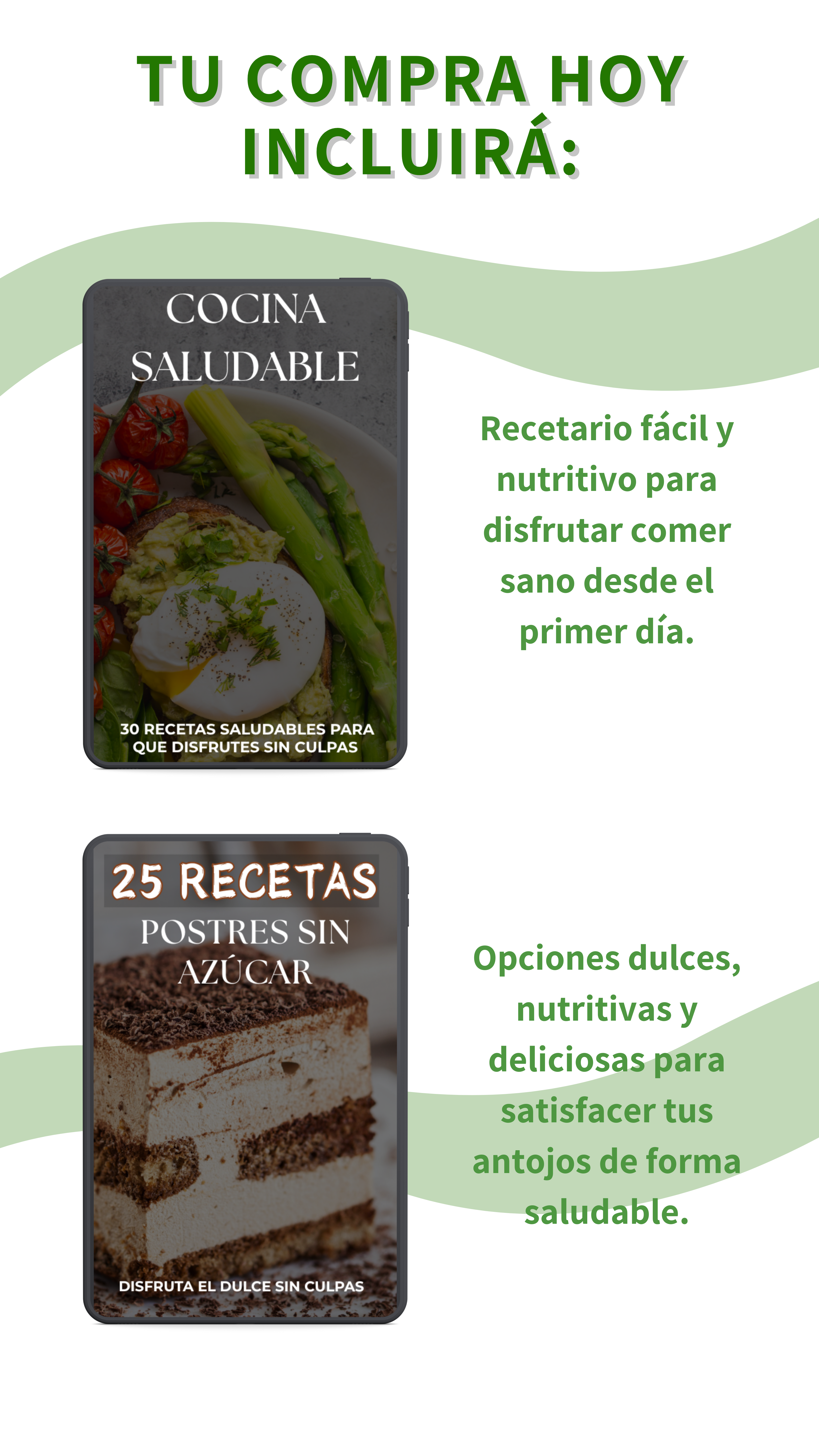 Con tu compra, además del recetario principal, recibís automáticamente los 7 eBooks de regalo en el mismo correo de descarga.